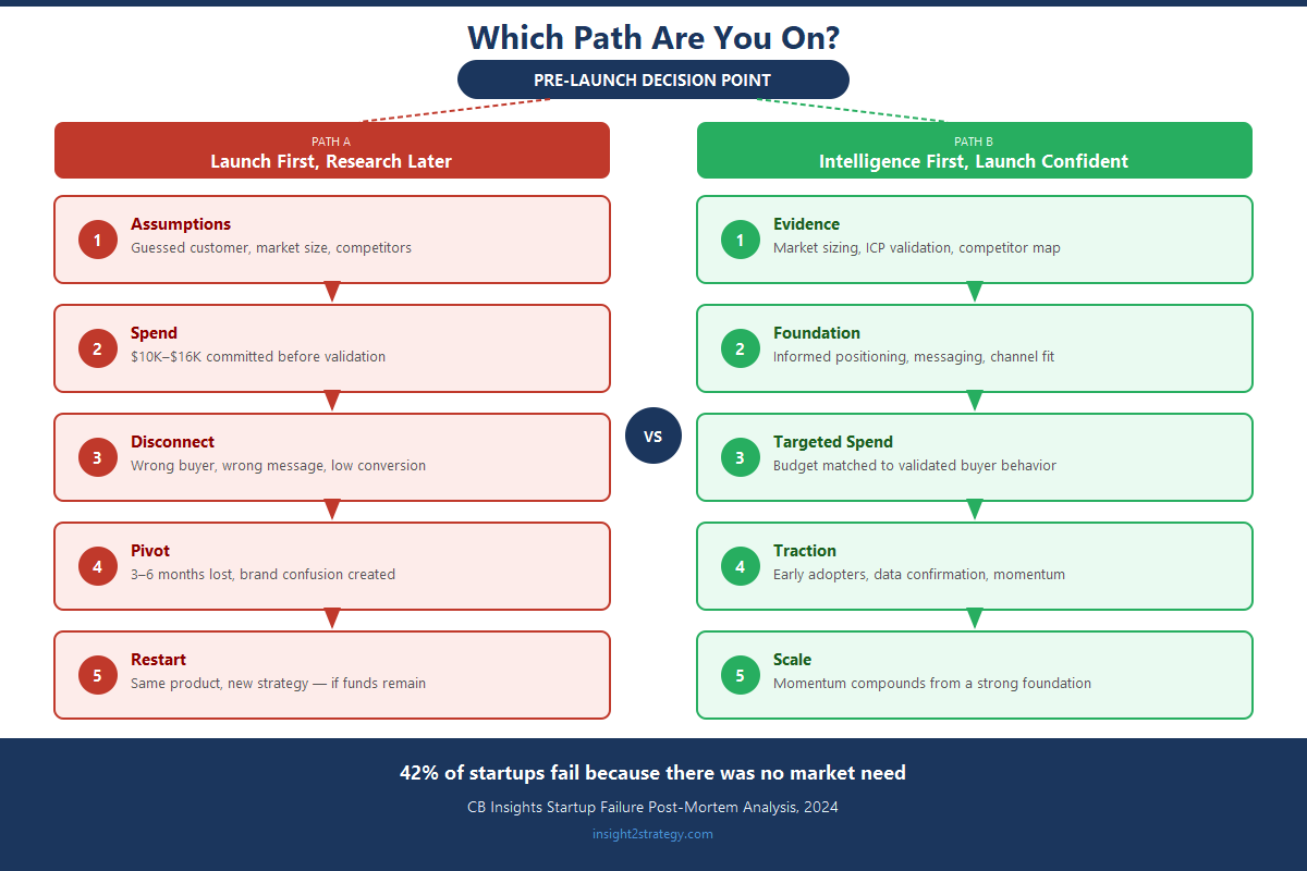 Most pre-launch founders operate on assumptions. They assume they know who their customer is, what competitors are doing, and how large the market is. When those assumptions are wrong — and research shows they frequently are — every subsequent marketing decision compounds the error.